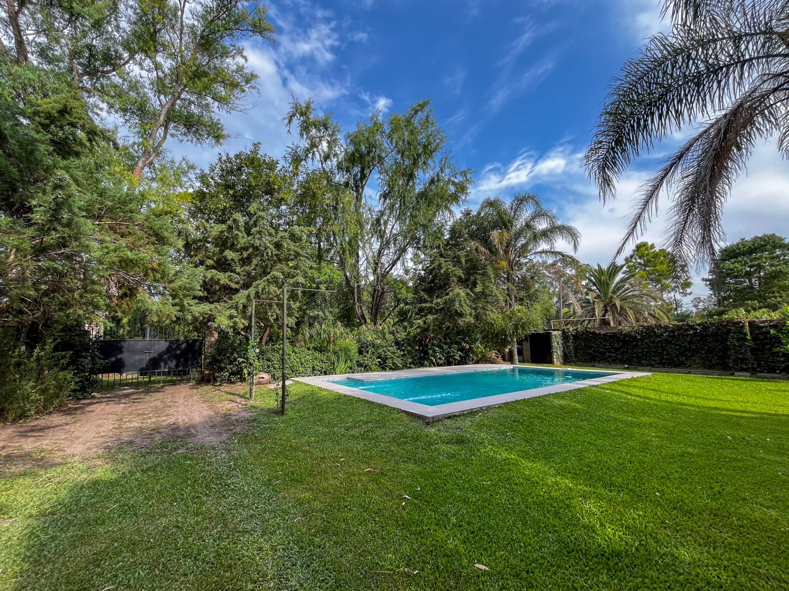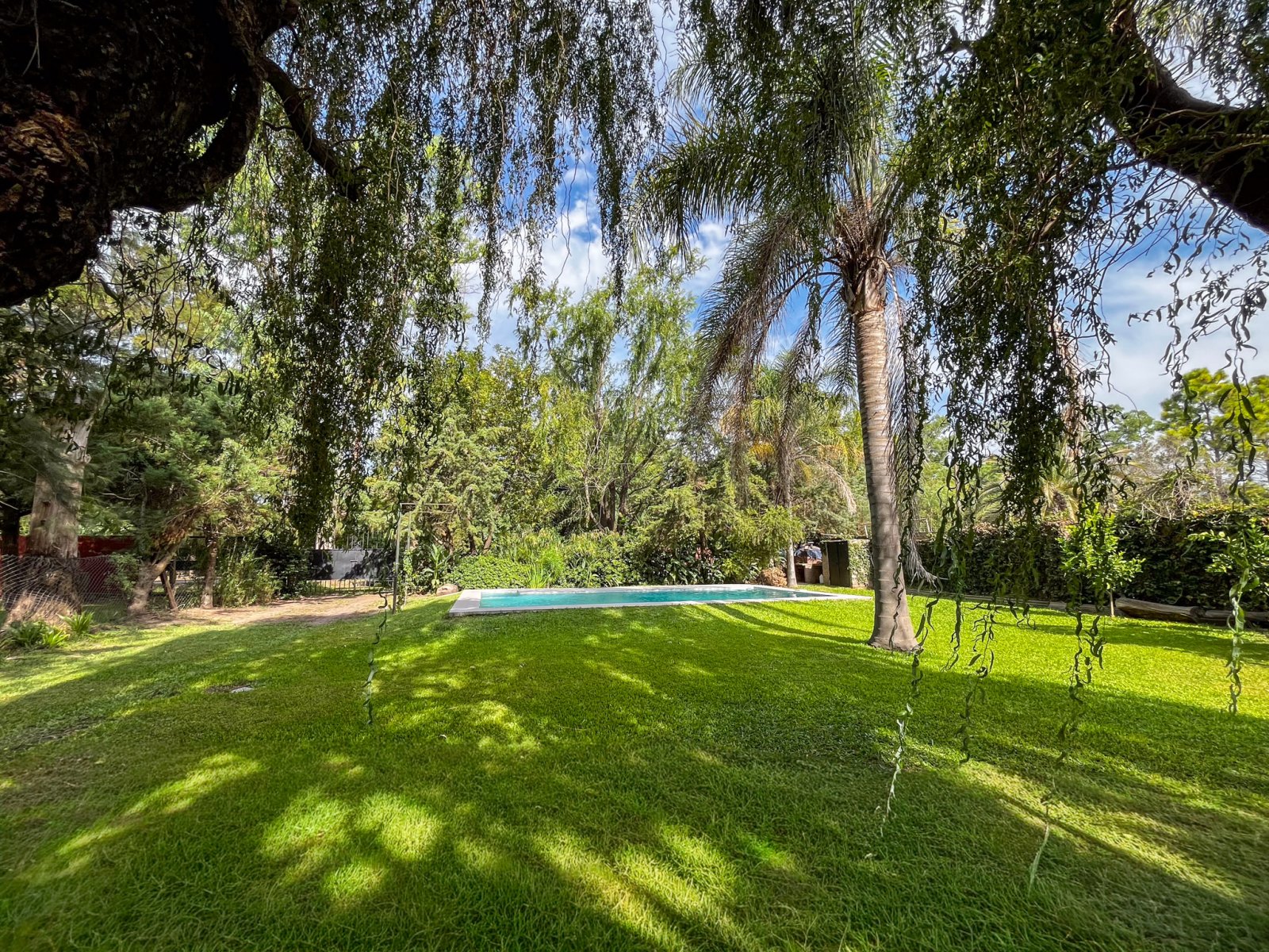La piscina de material de 8 x 4 m 🏊♂️ se convierte en el centro del verano, rodeada de árboles añosos que aportan frescura y encanto natural. El terreno de 570 m² (19 x 30) ofrece espacio de sobra para seguir diseñando tu oasis personal, con 90 m² cubiertos pensados para el disfrute diario.